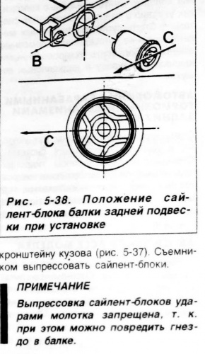 Также на видео дается крайне полезный совет по расположению сайлентблока в посадочном отверстии (с 3.45). Отверстия должны быть параллельно оси балки для правильной посадки.